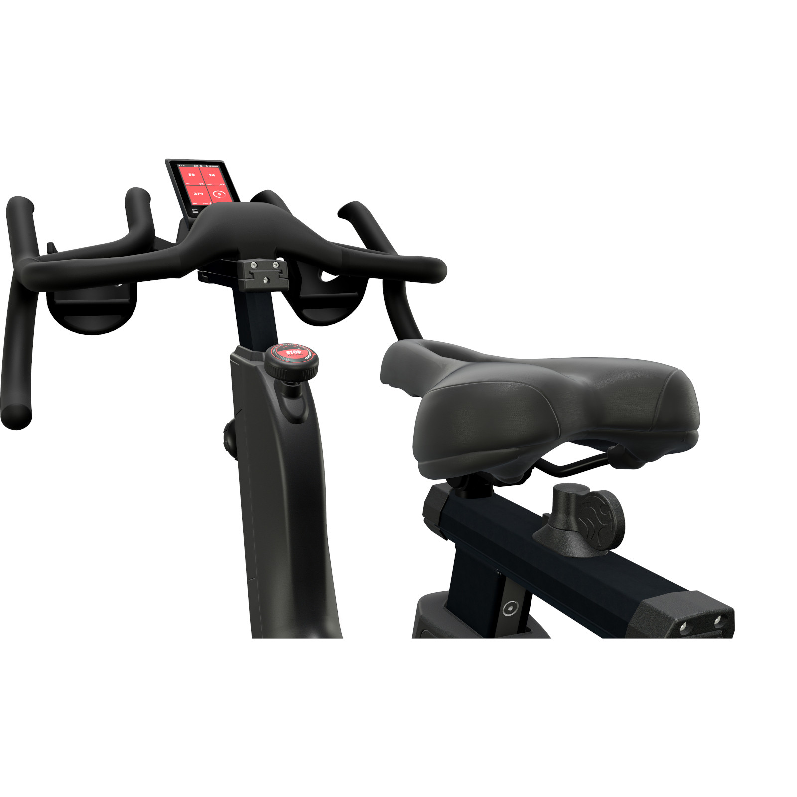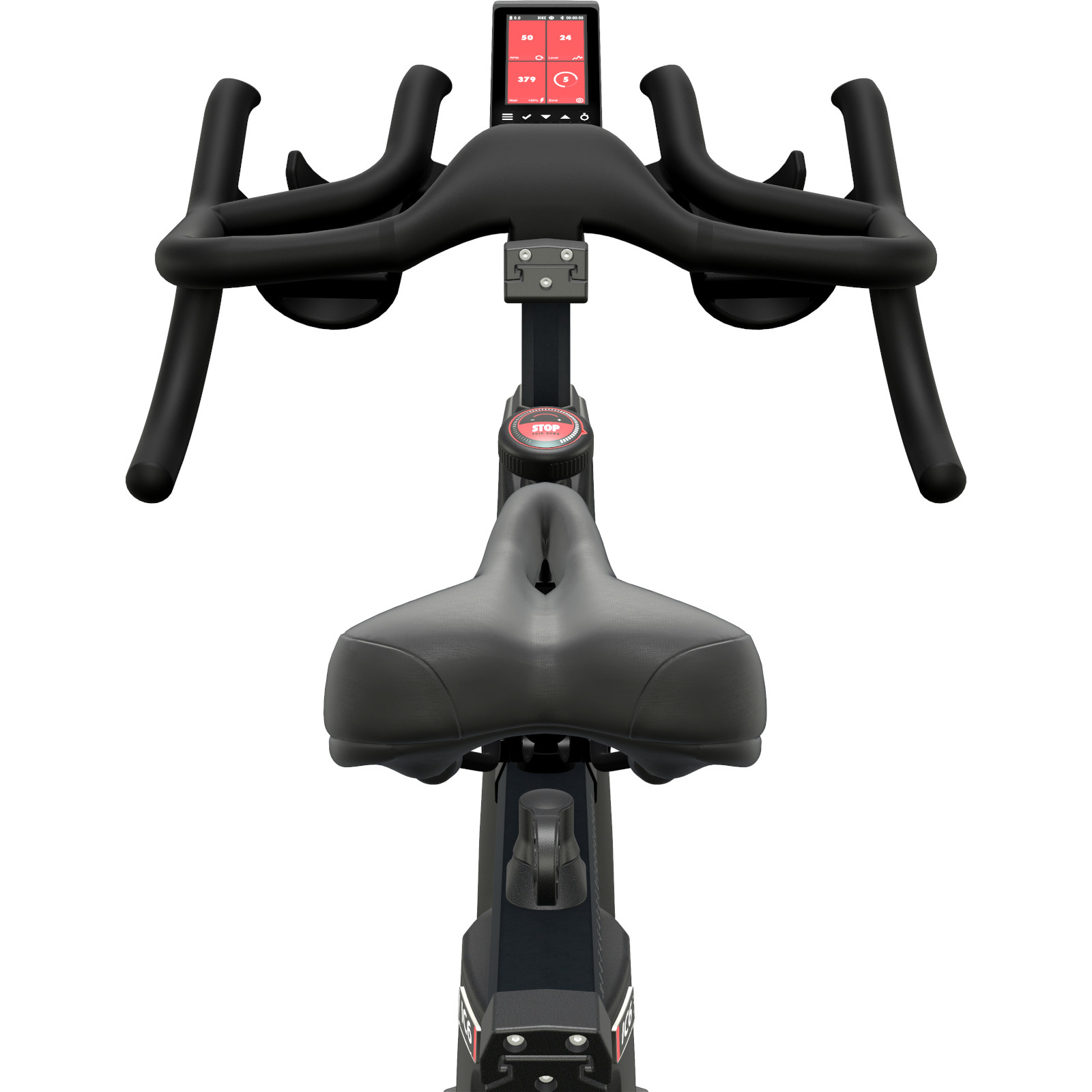 Every user will find an ideal training position on the new IC6. Whether a very sporty or upright posture, thanks to a variety of adjustment options on the saddle and handlebars, this is no problem. The ergonomically shaped saddle is kept rather sporty, but still comfortable. The standard saddle mount allows you to replace the saddle with another model. The multi-position handlebars offers multiple grip options and have two bottle cages. The display is clearly visible in the front area.On the large, colour TFT display you can easily see all training parameters and are supported by graphics when recording the values. Thanks to the Coach By Color® principle, the respective loads are displayed in colour on the basis of heart rate or watts pedalled, and are a good indicator or additional motivation.